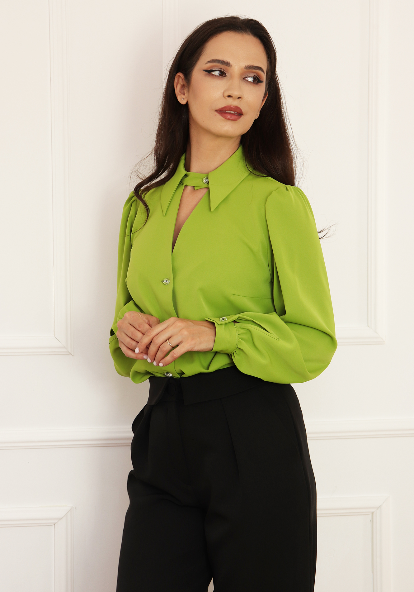- Bluza office cu guler cu colt;
