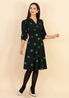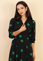 - Maneca trei sferturi bufanta cu pliuri in zona umarului si manseta;