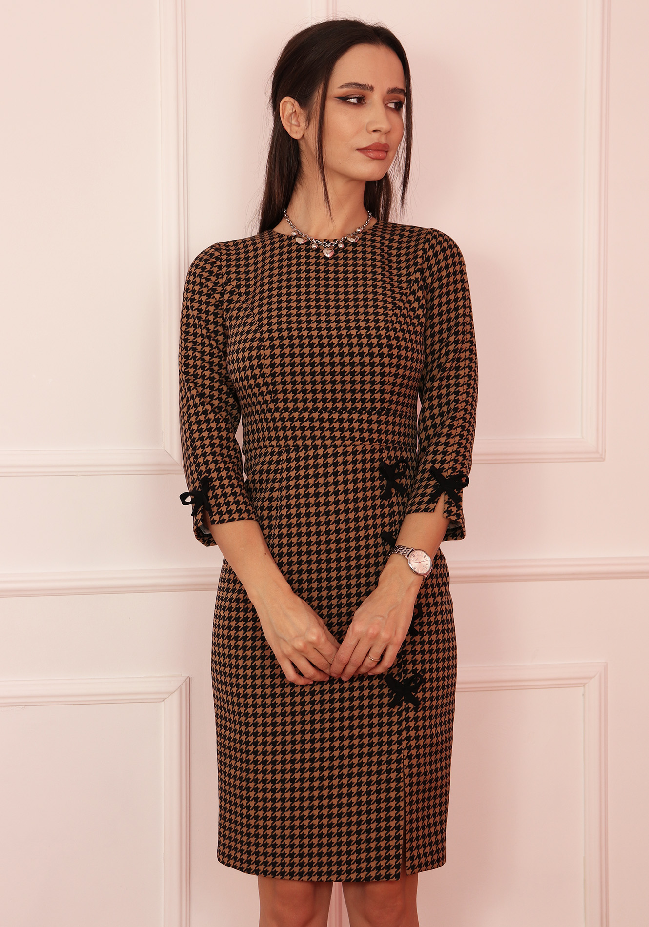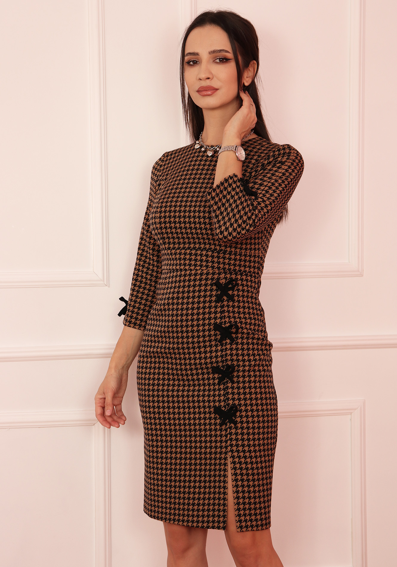 - Maneca trei sferturi cu funde decorative;