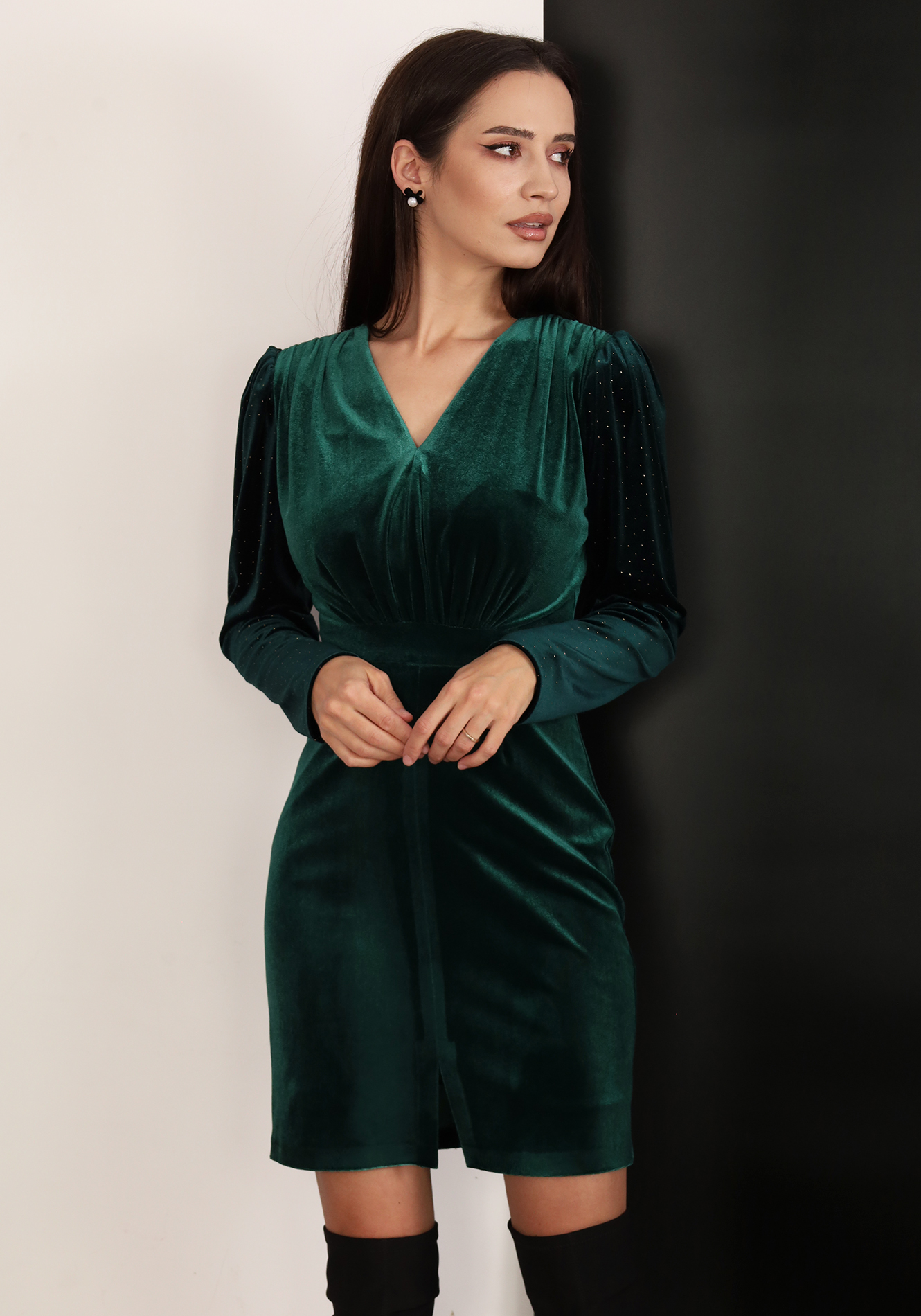 - Rochie conica cu decolteu V in fata si rotund in spate;
