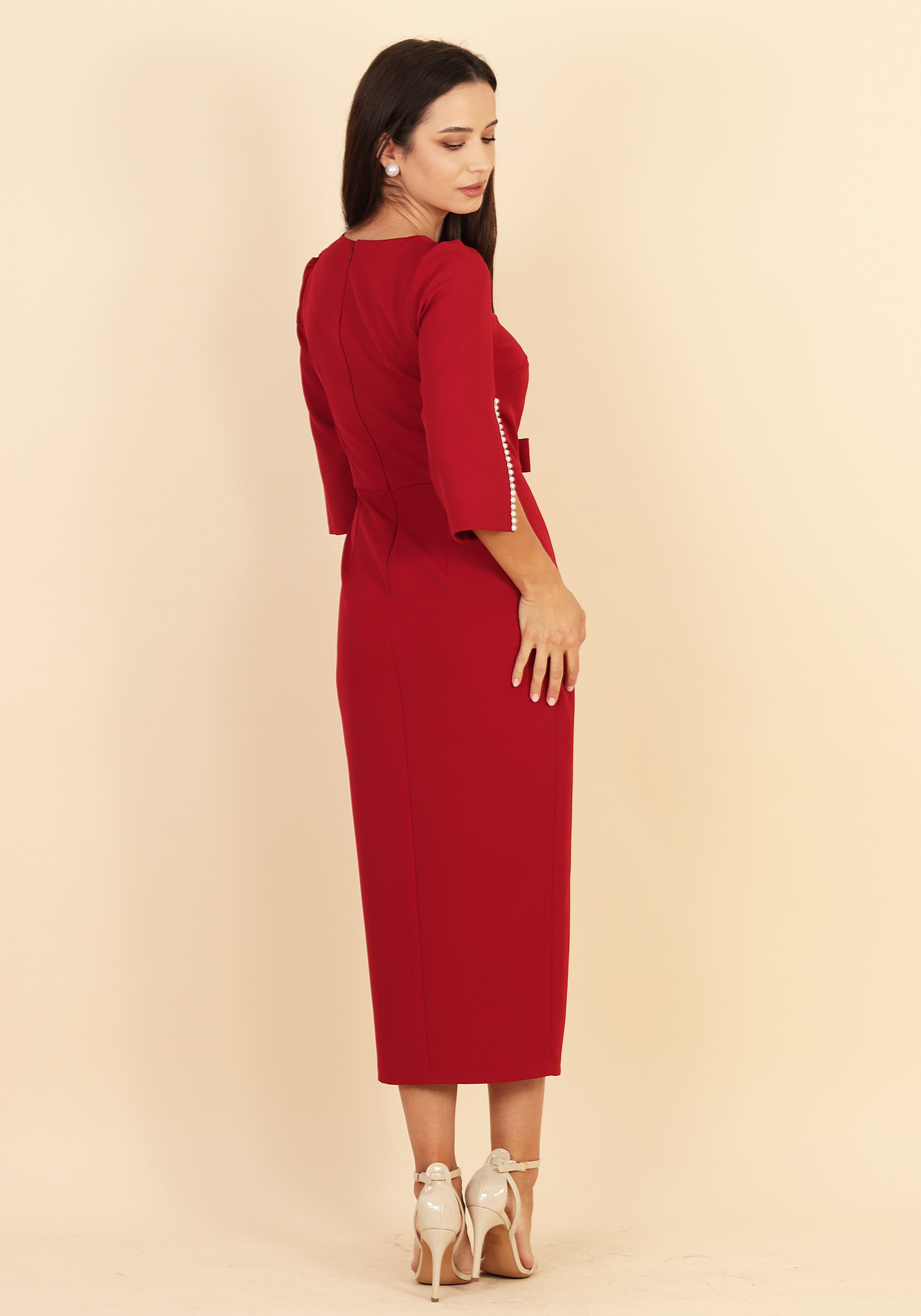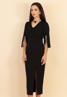 - Rochie conica cu decolteu V in fata si rotund in spate;