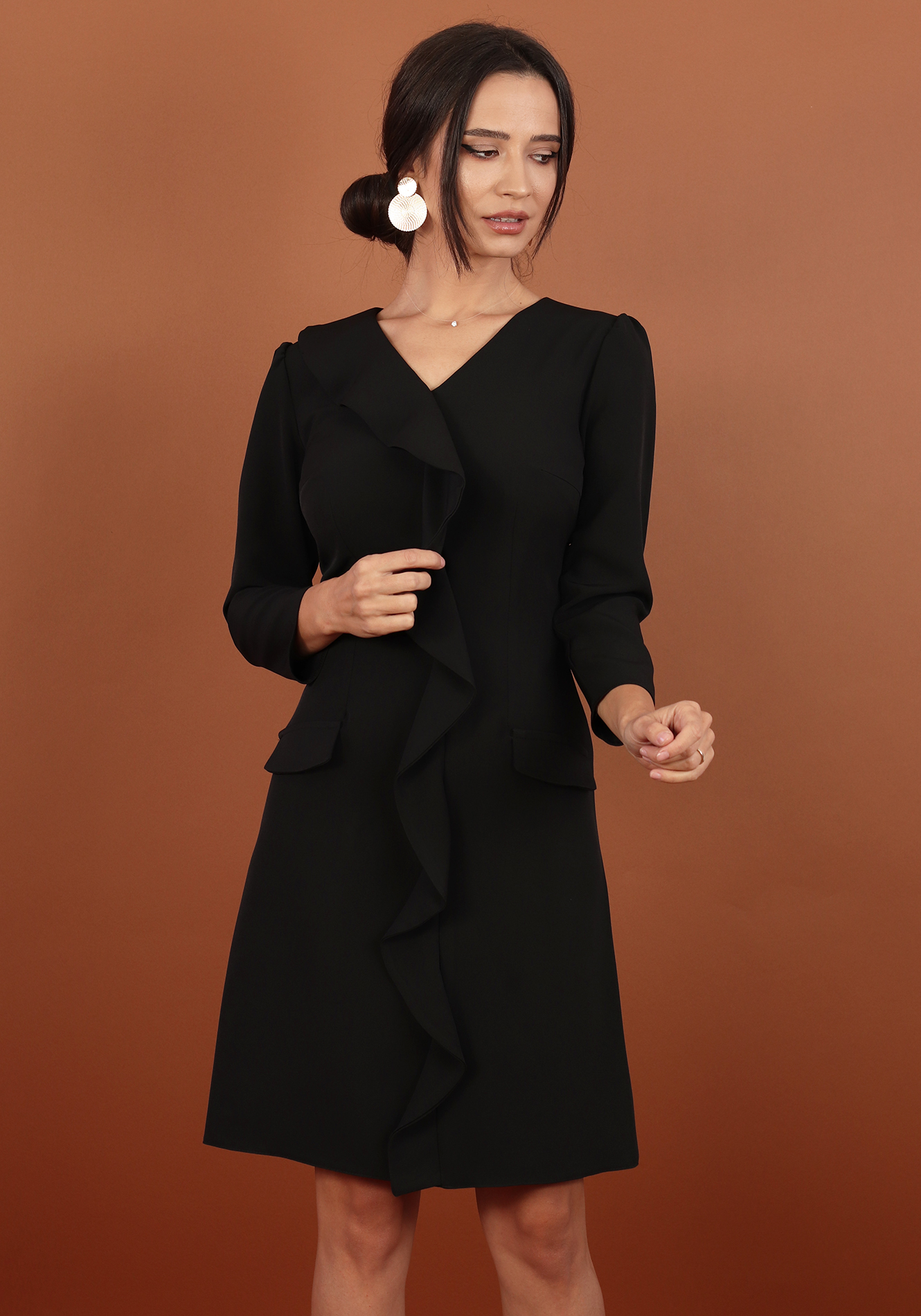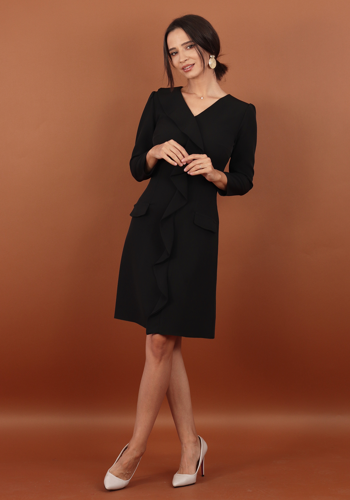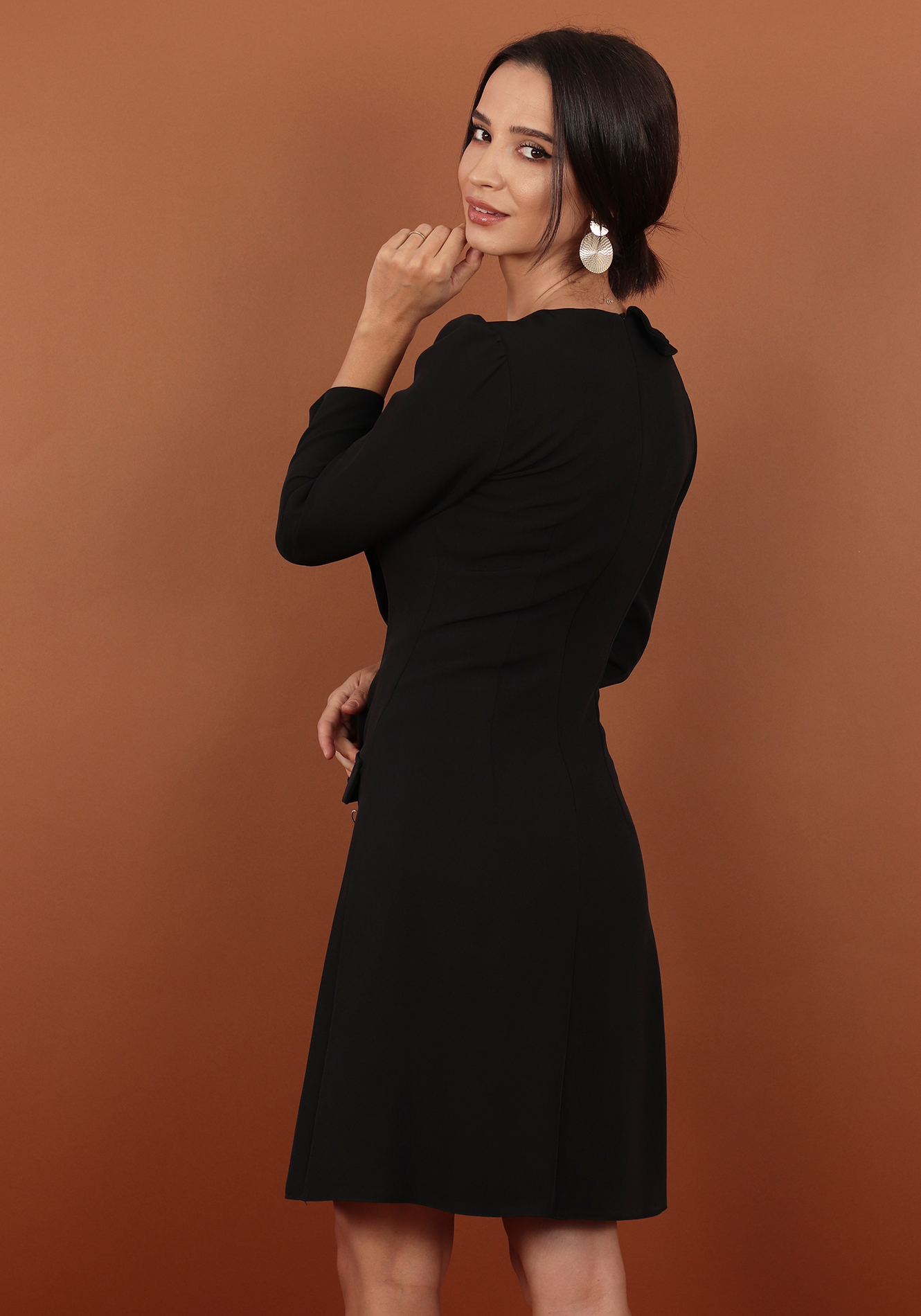 - Rochie evazata cu decolteu tip V in fata si rotund in spate;
