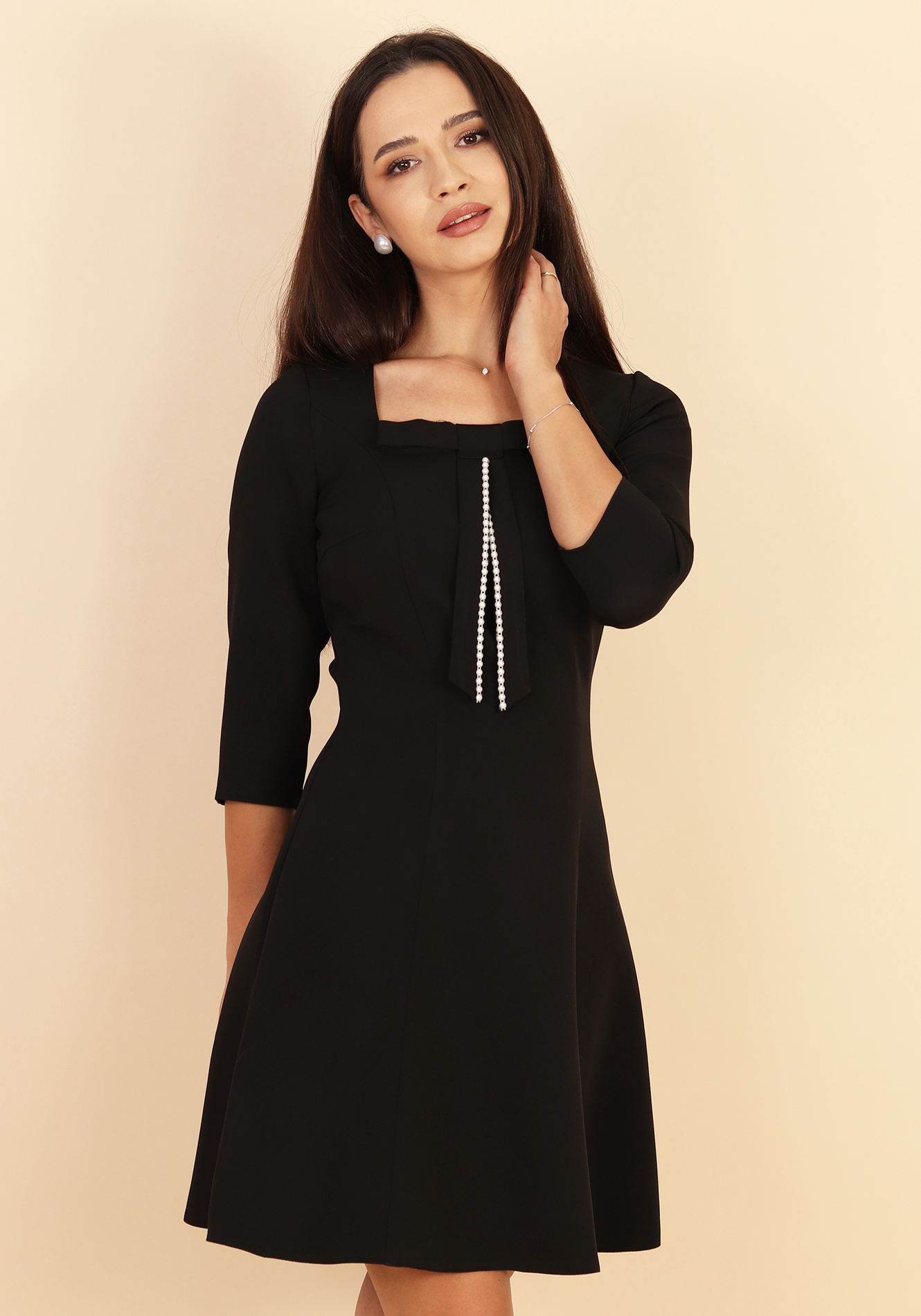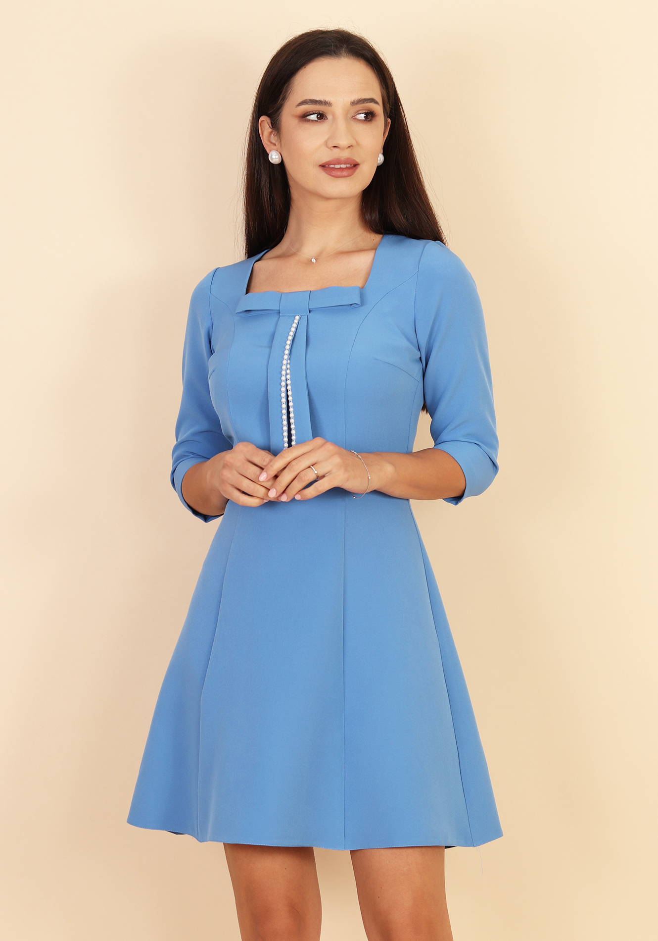 - Rochie in clini cu decolteu adanc in fata si rotund in spate;