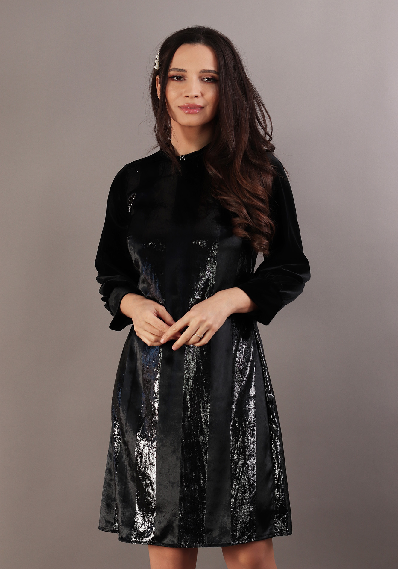 - Rochie lejera cu guler accesorizat cu banda decorativa;