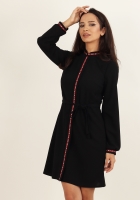- Rochie lejera cu guler tunica accesorizat cu banda decorativa;
