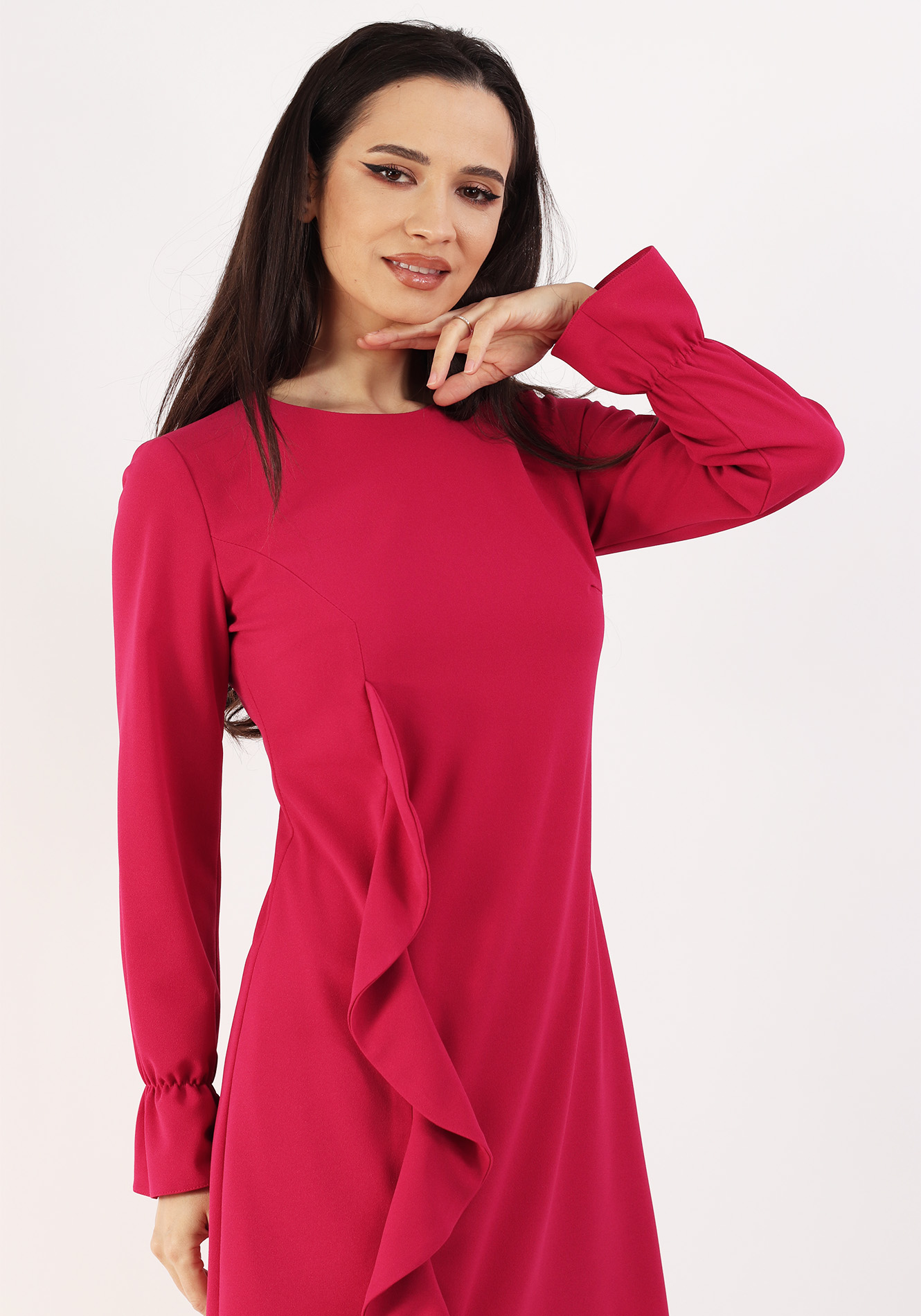 Rochie conica cu guler ascutit ciclame