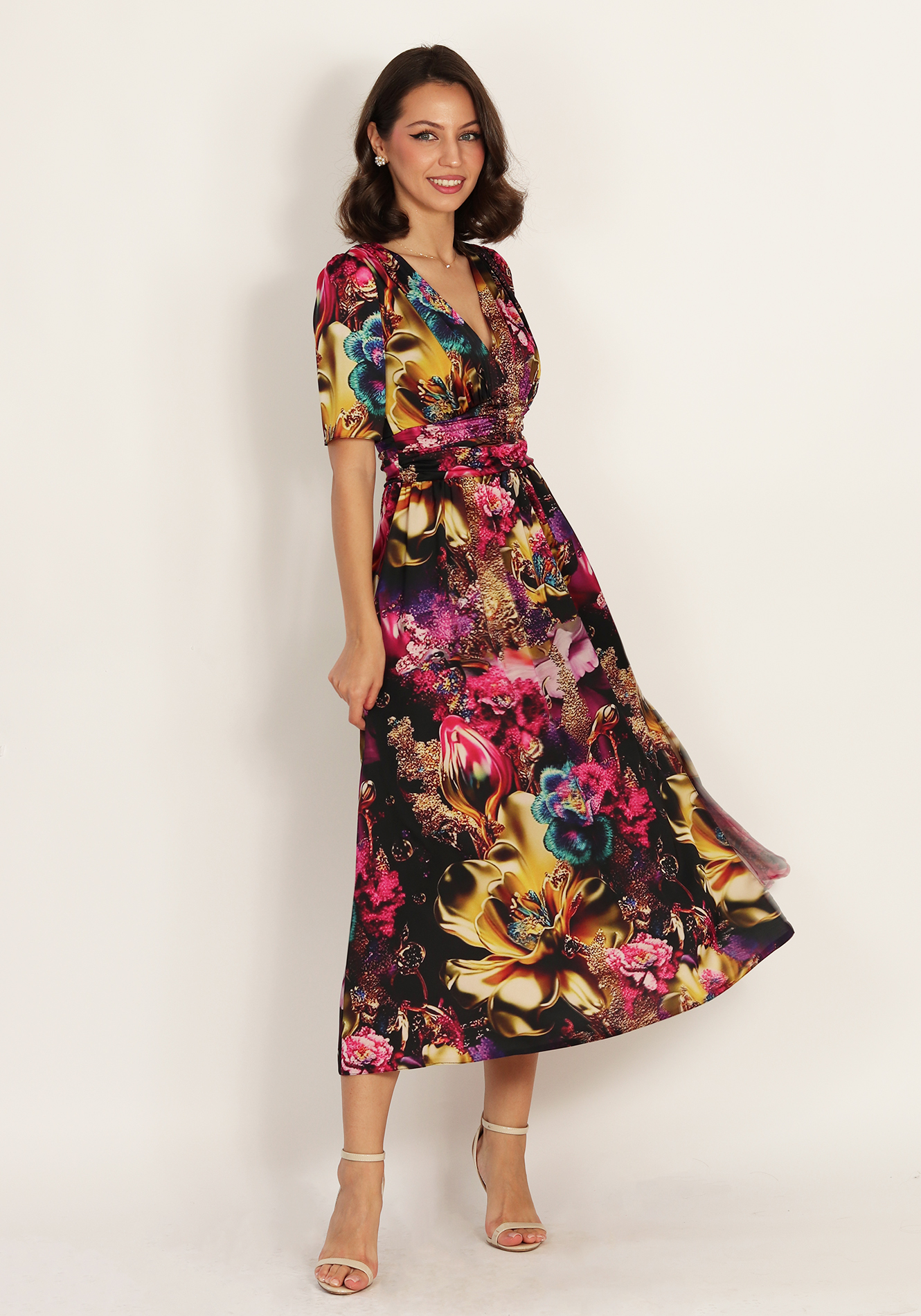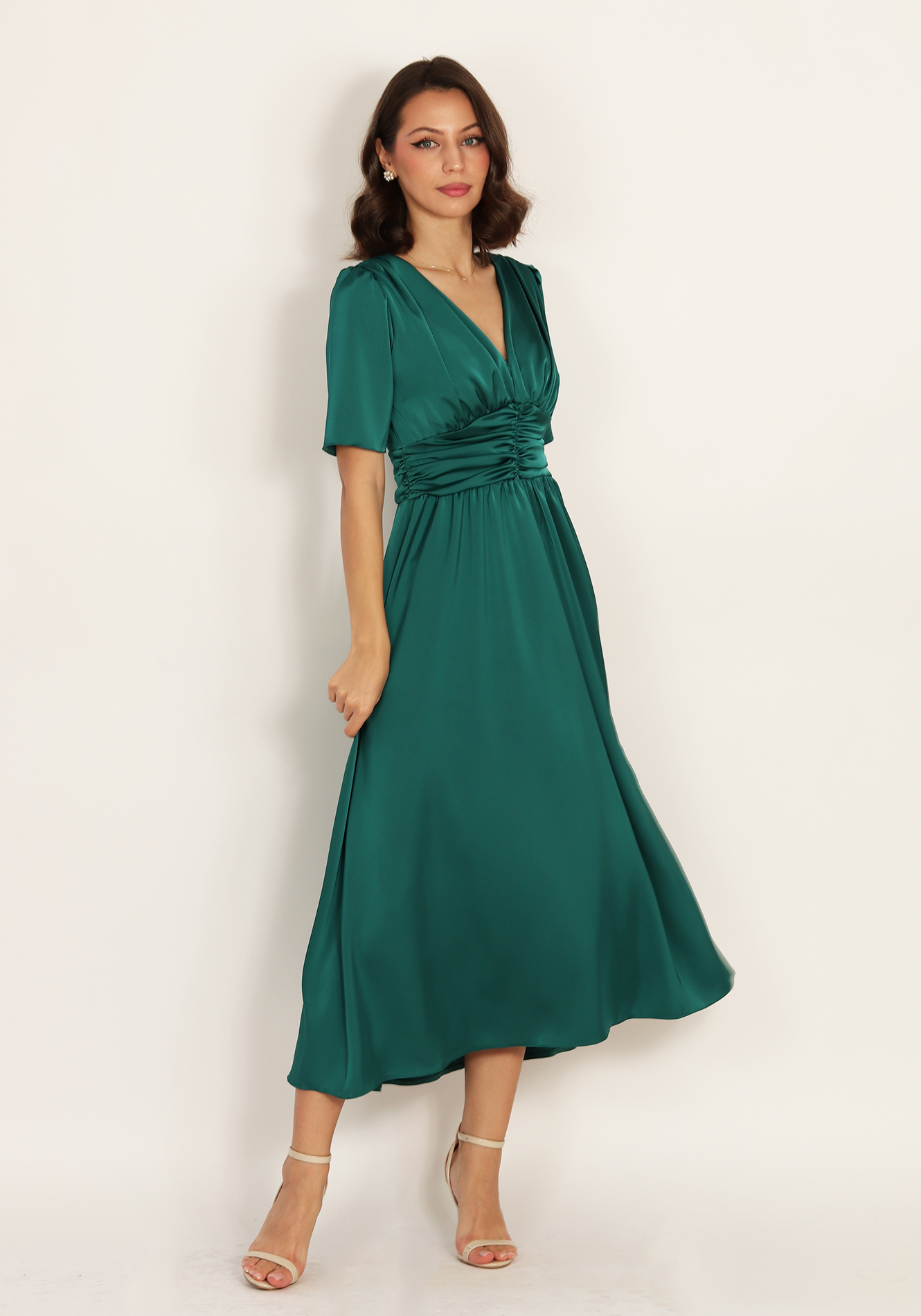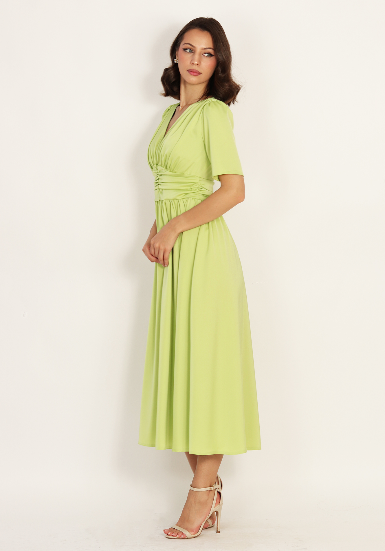 - Rochie midi cu decolteu V in fata si rotund in spate;