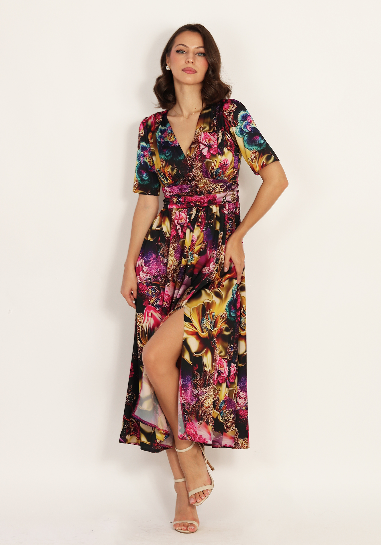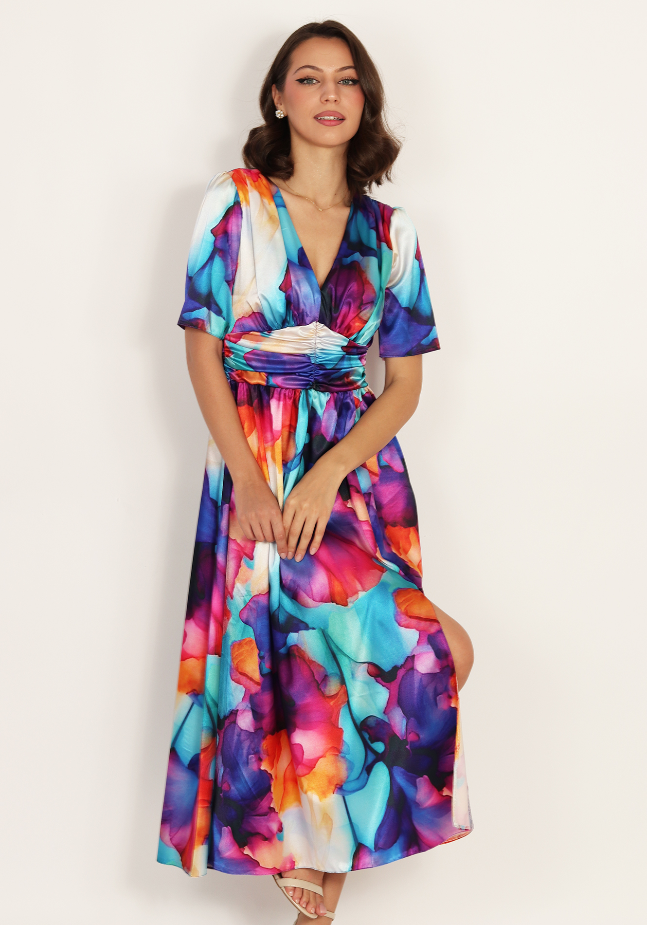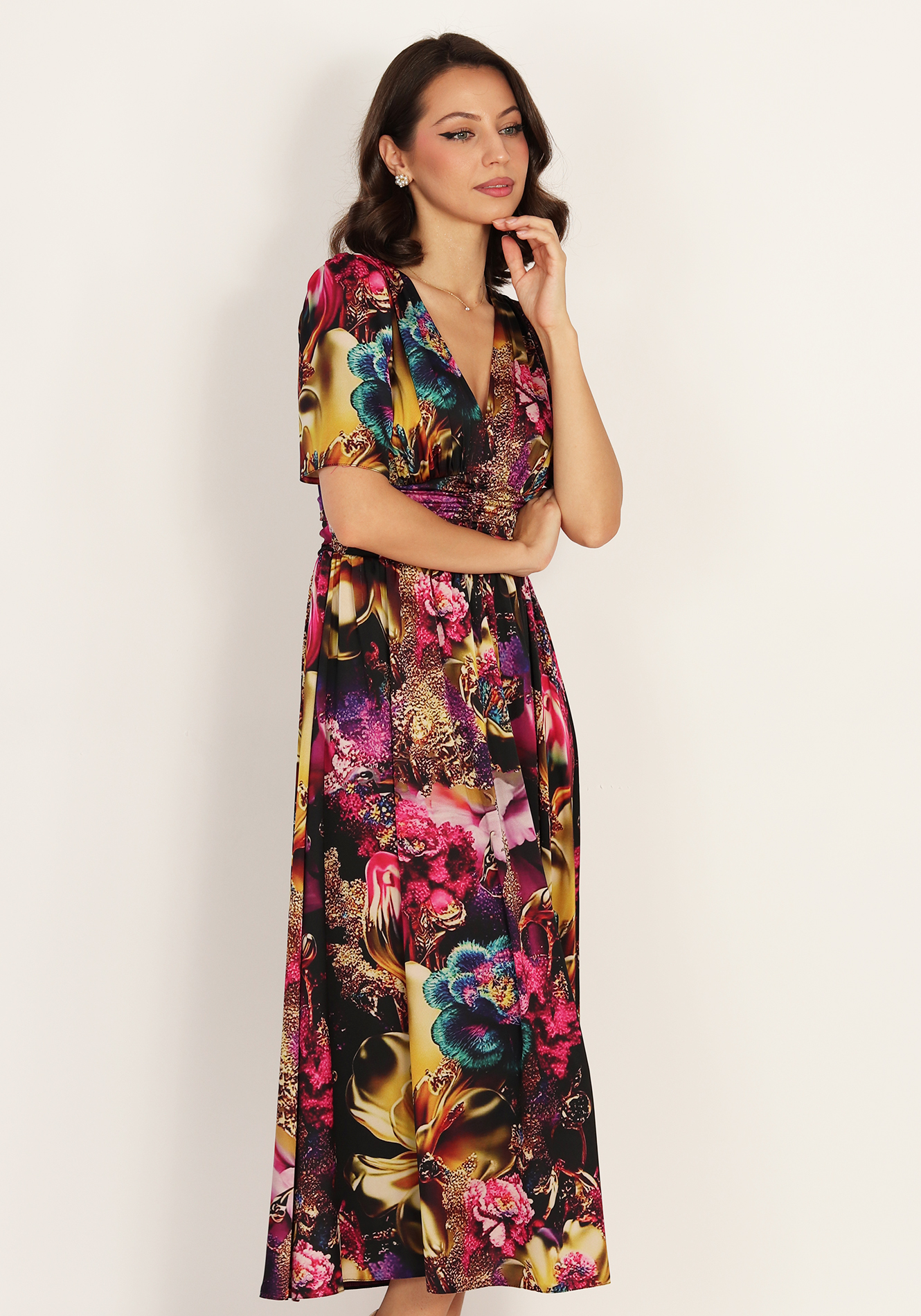 - Rochie midi cu decolteu V in fata si rotund in spate;